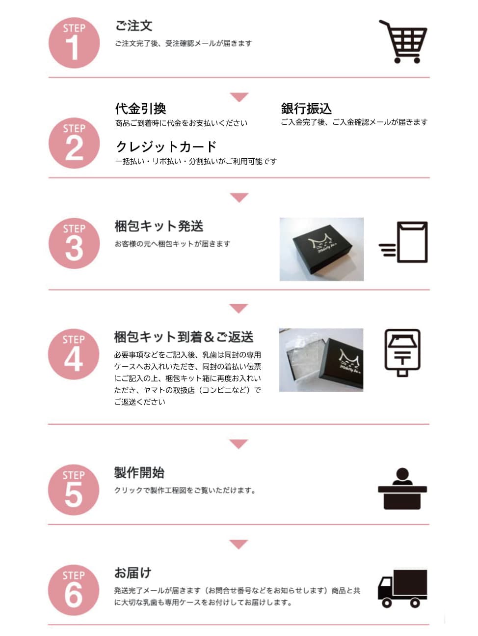 商品お届け時に、商品代金・送料・消費税・代引き手数料を配達員に現金でお支払いください。